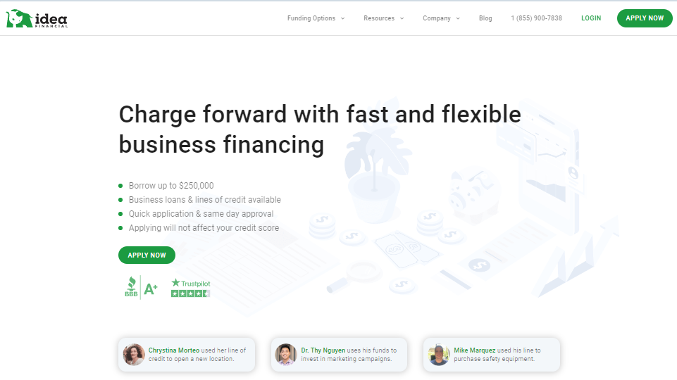 Distinguishing itself from its online counterparts, the lender adopts a notably discerning approach in the selection of business owners it collaborates with. Unlike several online lenders that extend financing options to entities with poor credit history and engage with ventures deemed riskier, Idea Financial adopts a markedly stringent stance. It restricts its eligibility criteria exclusively to well-established enterprises boasting fair to good credit profiles.